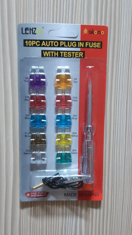 پک کامل تستر فیوز خودرو( برند لنزو )همراه با ۱۰ عدد فیوز شیشه ای